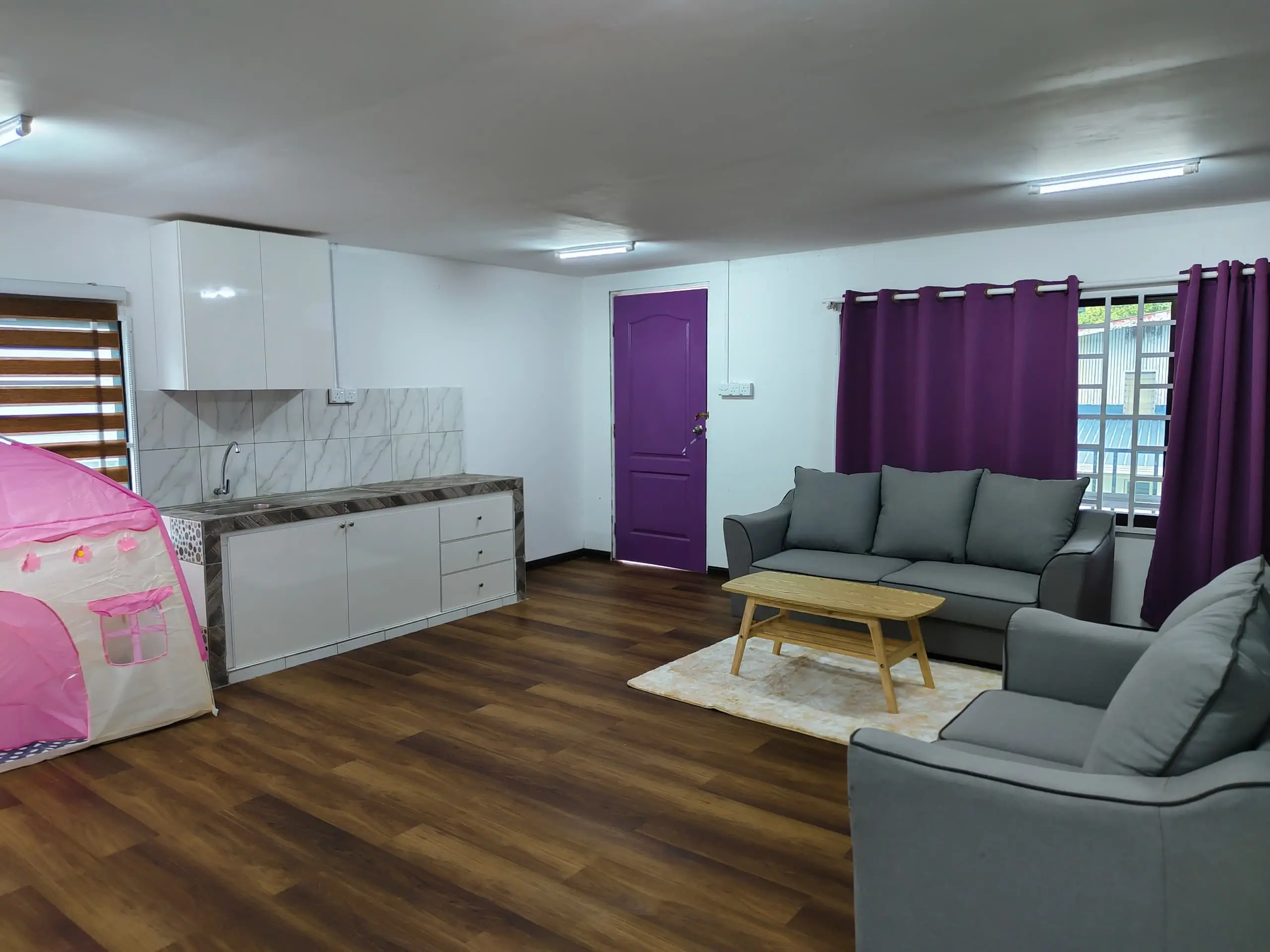 A welcoming living room with a comfortable sofa and coffee table, ideal for relaxing with family and friends.